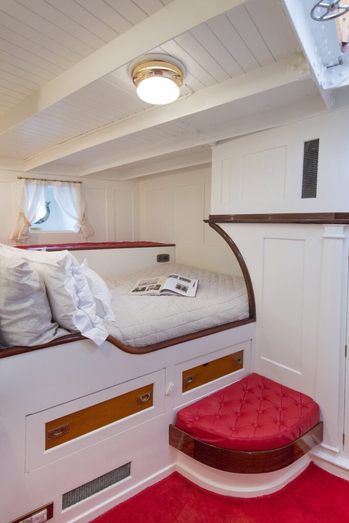 The spacious cabins are havens of tranquility, featuring plush bedding and panoramic windows that frame the mesmerizing seascapes.Â
