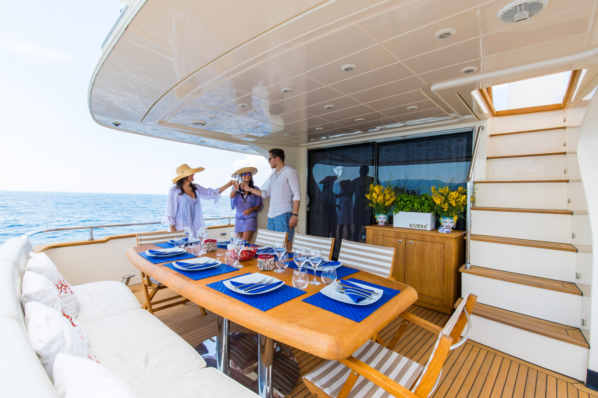For those eager to explore the water, RIVIERA’s selection of watertoys and her easily accessible swim platform invite spontaneous dives, paddleboarding adventures, or playful fun on a seabob. Whether cruising along the Amalfi Coast or anchored in a secluded bay, she transforms every destination into a private paradise.