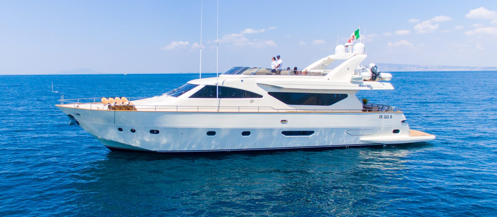 Allow me to introduce RIVIERA—a sleek and stylish 24-metre motor yacht crafted by the esteemed Italian shipyard Alalunga. With her timeless lines, planing hull, and high-performance engineering, RIVIERA embodies the essence of agile elegance and Mediterranean leisure. First launched in 2009 and maintained to impeccable standards, she is the perfect blend of Italian design, modern amenities, and seaworthy sophistication.