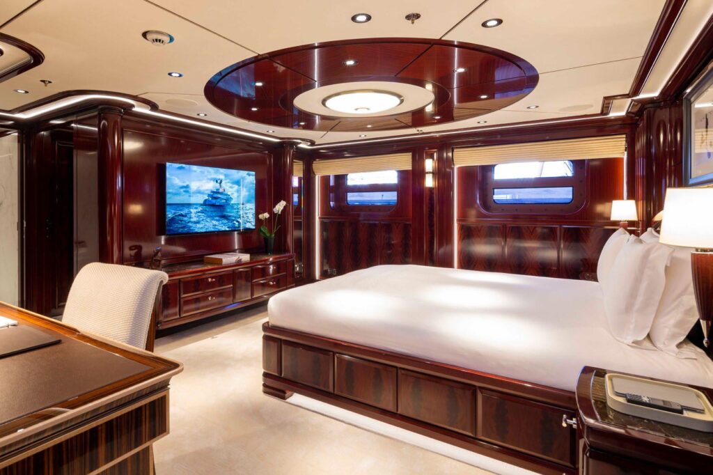 The guest suite on ROCK.IT offers a comfortable retreat with two beds, ideal for families or friends traveling together. This well-appointed suite features elegant décor, ample storage space, and large windows providing scenic views of the sea. Guests can relax in privacy and comfort, enjoying the peaceful ambiance onboard. The guest suite ensures a pleasant stay with all the amenities needed for a relaxing voyage aboard ROCK.IT.