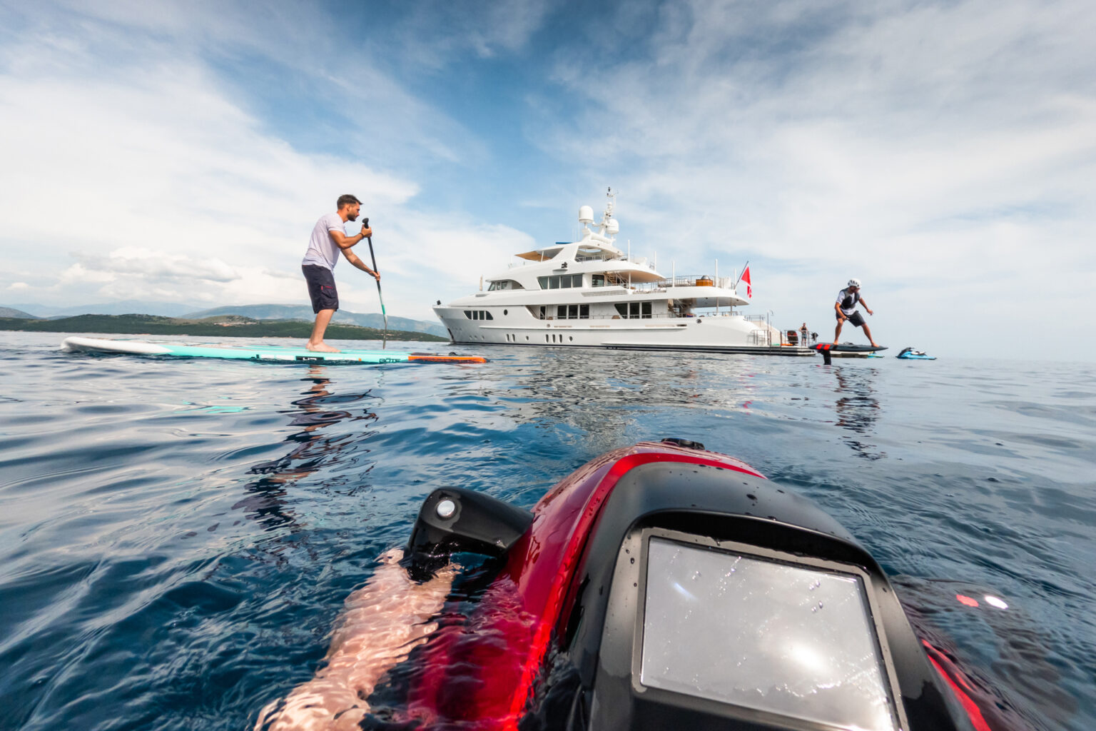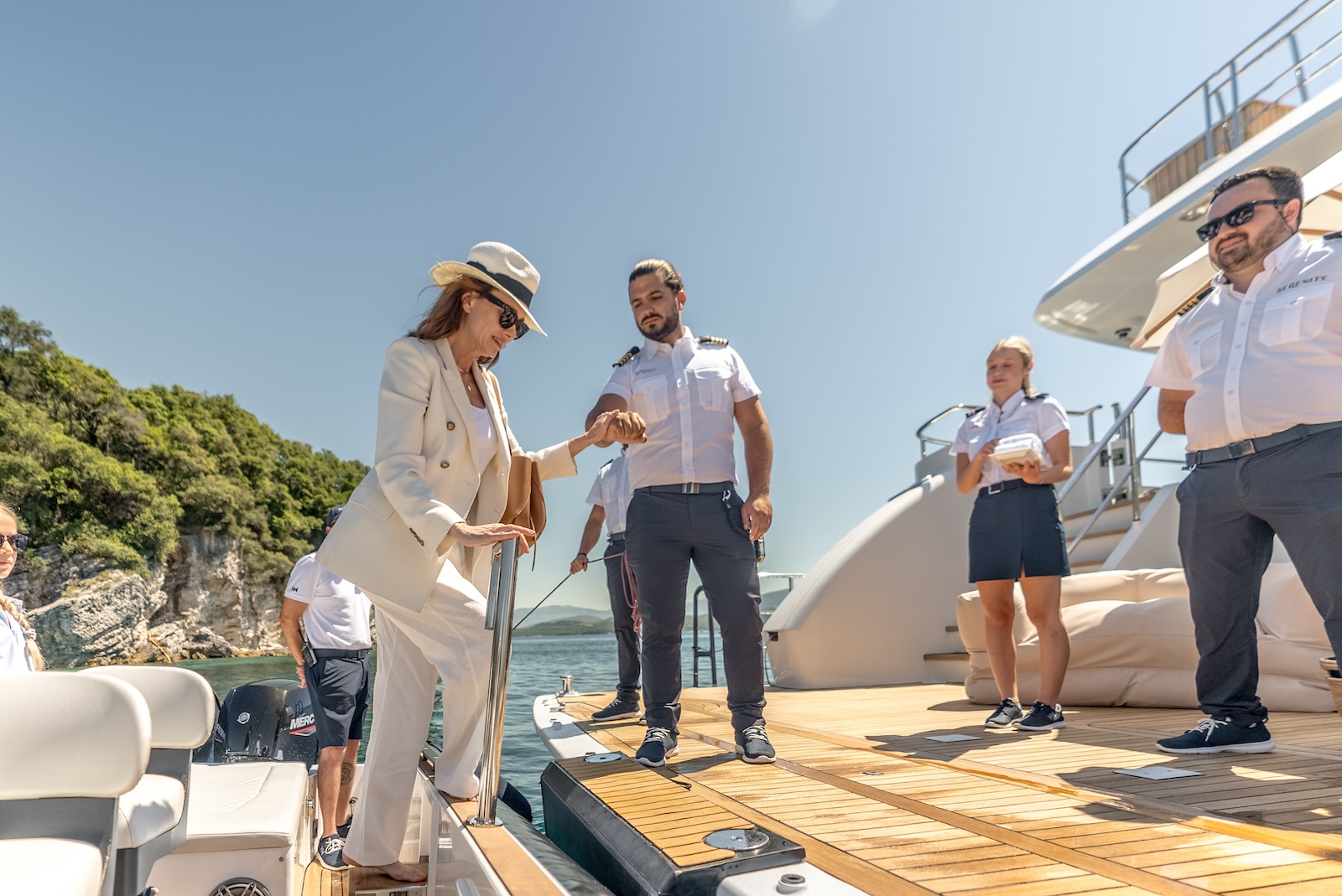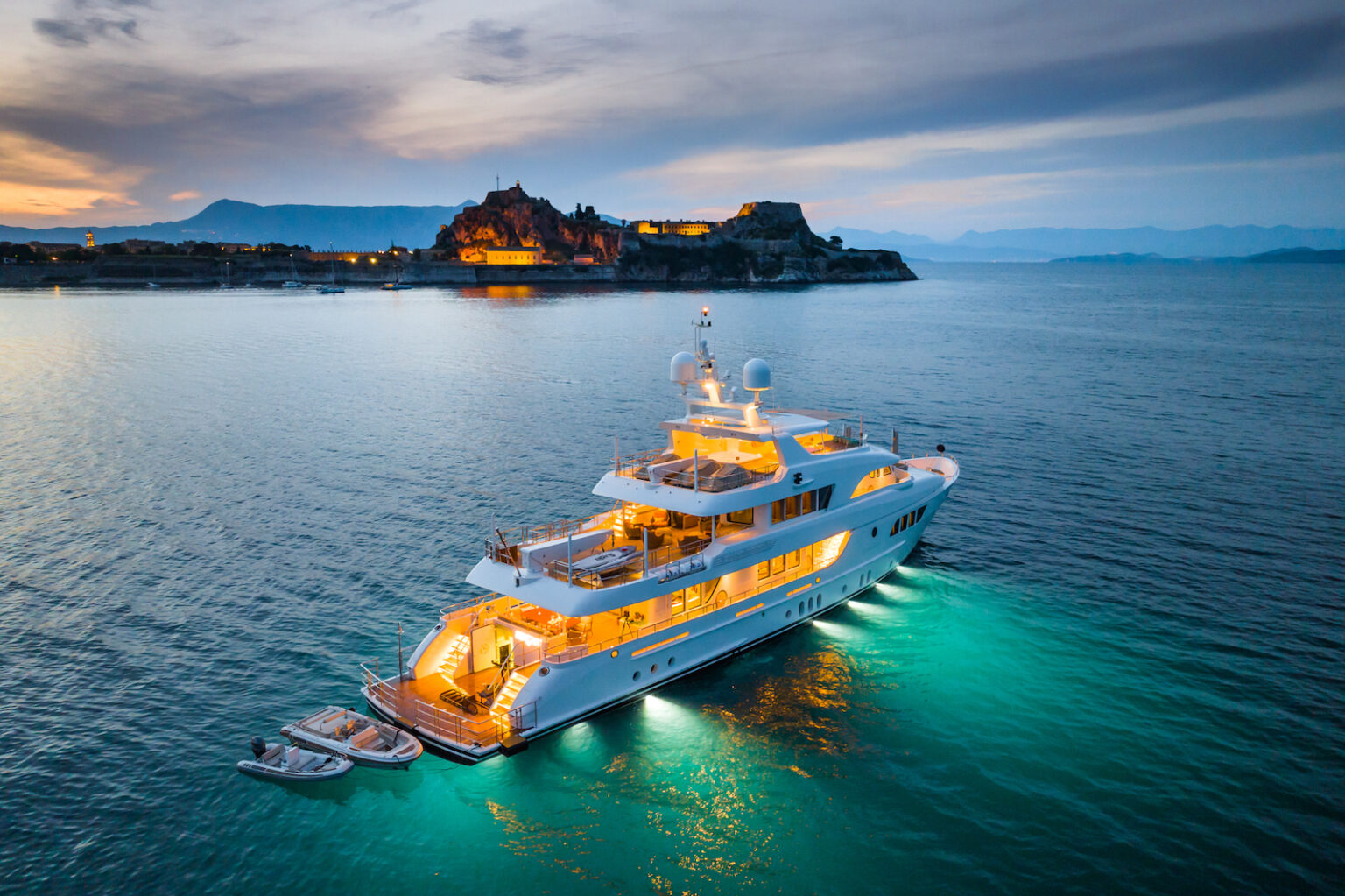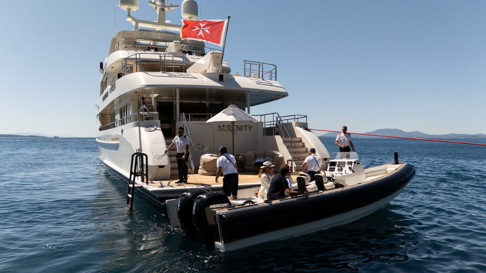 For thrill-seekers, SERENITY boasts an impressive collection of water toys, including 3 x waverunners, water scooters, efoils, and more. Her extended swim platform can swing out to create a safe docking area for guests. The yacht is also equipped with two tenders, including an 8m Viking Norsafe, offering a range of up to 12 nautical miles, ensuring a variety of exciting activities.