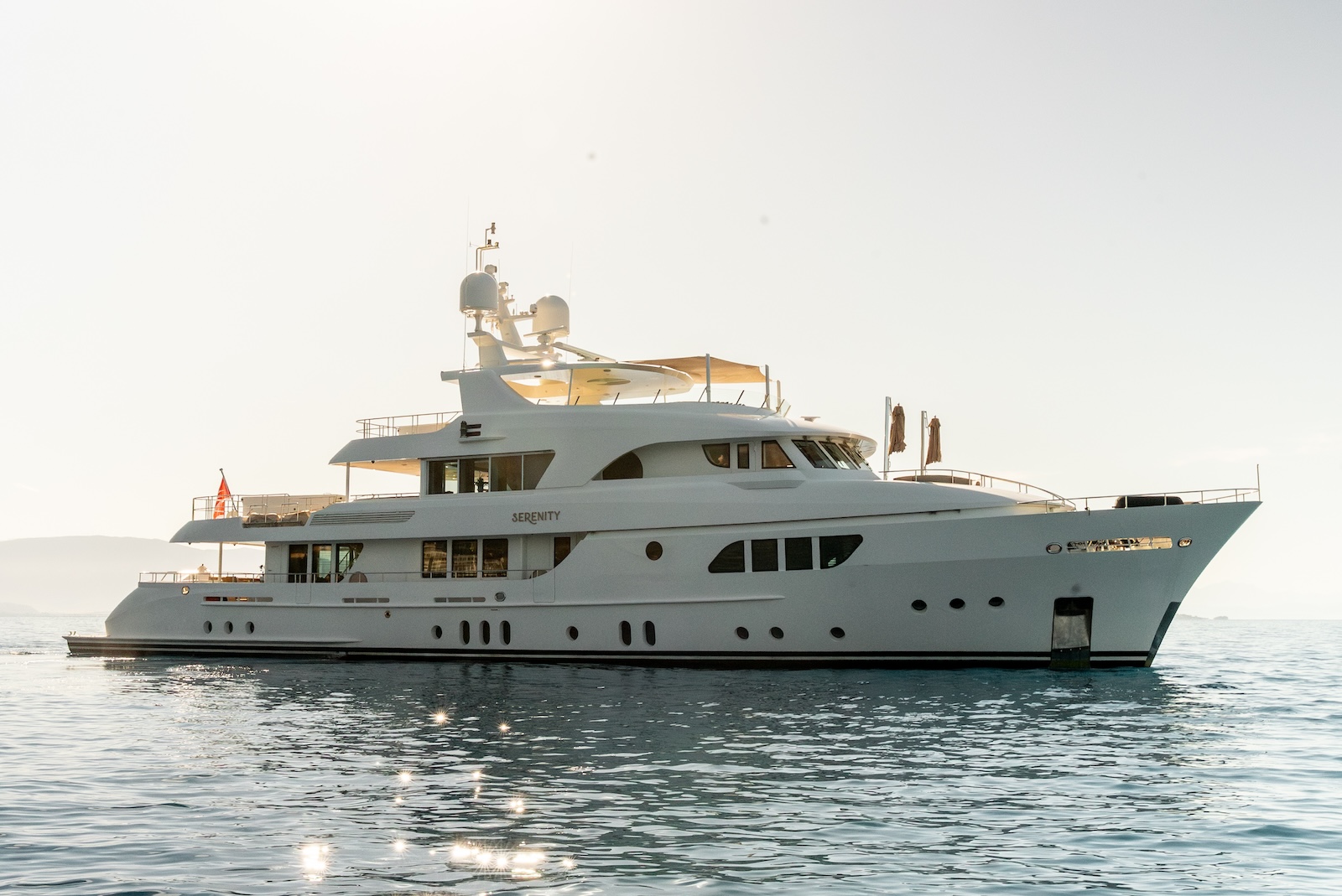 SERENITY is a stunning yacht built by the Dutch shipyard Moonen, featuring an elegant exterior design by René van der Velden. Her distinctive interiors, crafted by Art Line Interiors, offer a chic yet homely feel, with abundant space and natural light. Living areas are spread across four decks, linked by a striking stairwell and topped with a skylight that floods the interior with daylight. The yacht is defined by her uniquely curved architecture and rounded furniture, with a calming colour palette punctuated by vibrant accents.