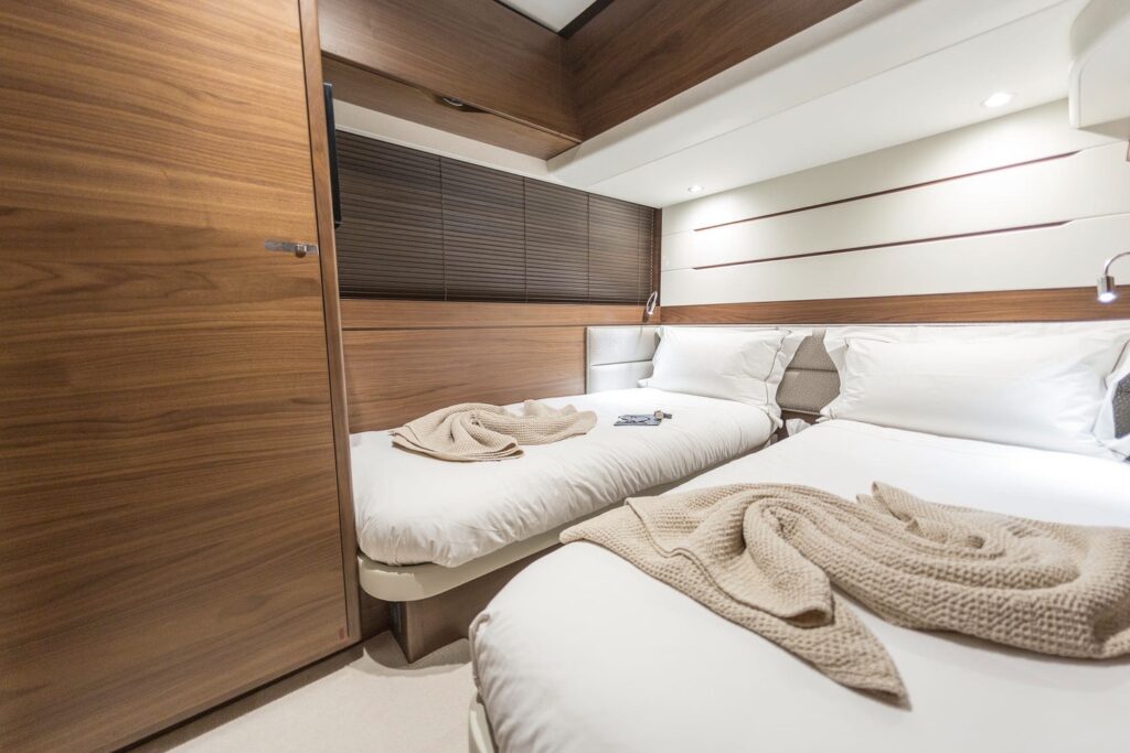 Welcome aboard to an unparalleled journey of luxury and sophistication. The yacht’s interior is meticulously designed to offer the ultimate in comfort and elegance.Â