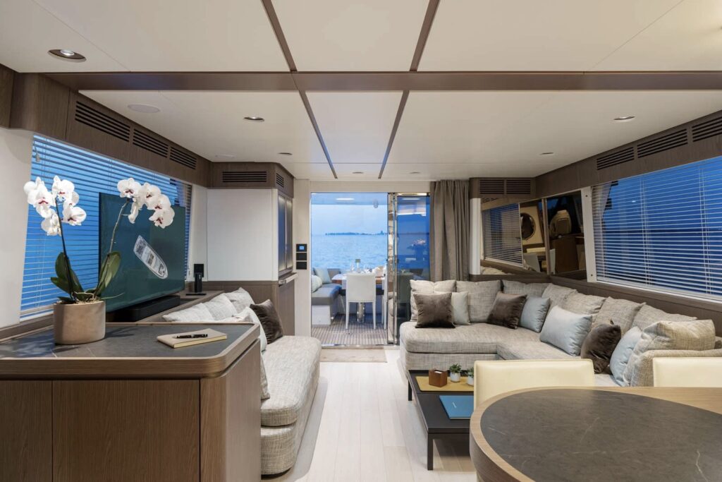 Welcome aboard to an unparalleled journey of luxury and sophistication. The yacht’s interior is meticulously designed to offer the ultimate in comfort and elegance.Â
