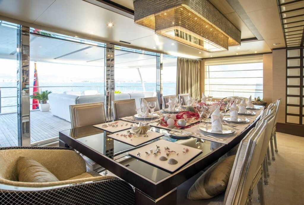 Welcome aboard to an unparalleled journey of luxury and sophistication. The yacht’s interior is meticulously designed to offer the ultimate in comfort and elegance.Â