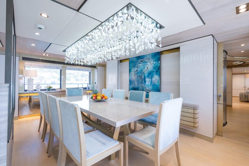 Welcome aboard to an unparalleled journey of luxury and sophistication. The yacht’s interior is meticulously designed to offer the ultimate in comfort and elegance.Â