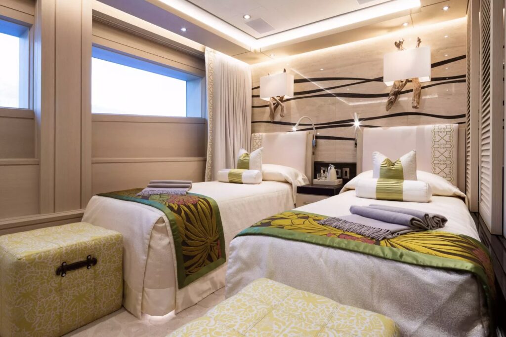 The spacious cabins are havens of tranquility, featuring plush bedding and panoramic windows that frame the mesmerizing seascapes.Â