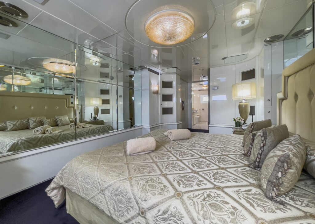 The spacious cabins are havens of tranquility, featuring plush bedding and panoramic windows that frame the mesmerizing seascapes.Â