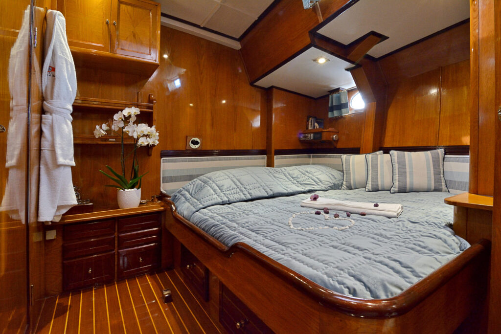 The spacious cabins are havens of tranquility, featuring plush bedding and panoramic windows that frame the mesmerizing seascapes.Â