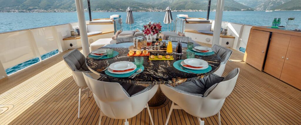 Whether you’re lounging in the sun-drenched salon, enjoying gourmet dining under the stars, or simply reveling in the serenity of the open sea, our yacht provides the perfect setting for an unforgettable escape into the world of maritime luxury.