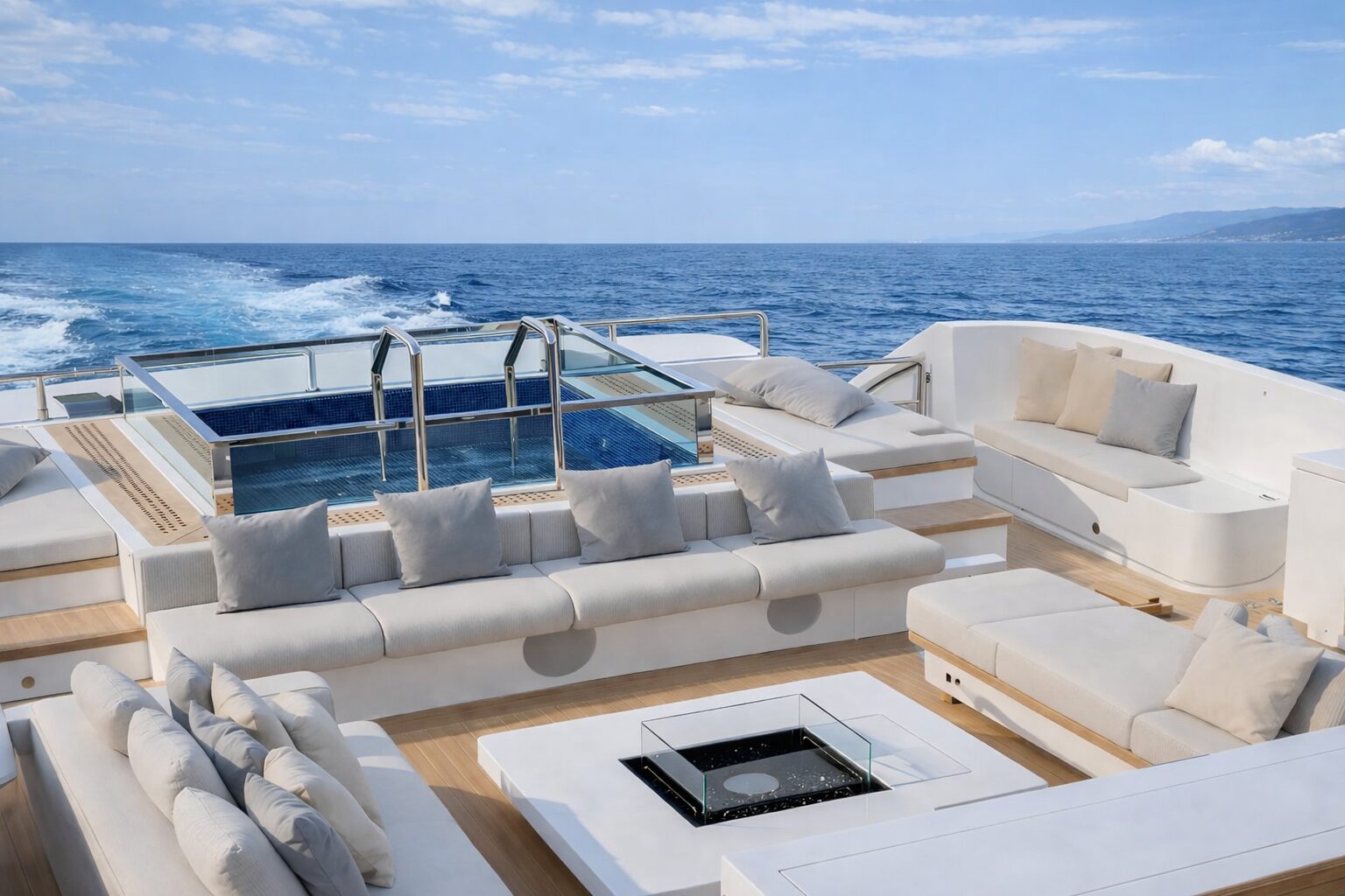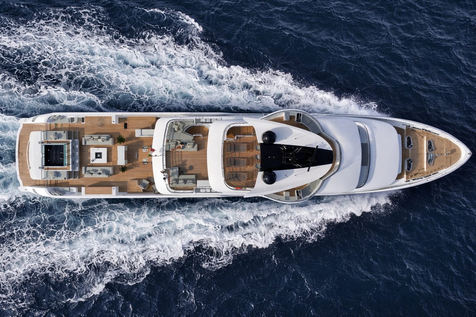 One of the defining features of the Oceanic 143 Tri-Deck is her exceptional exterior space. The aft deck, measuring approximately 130 square metres, is among the largest in her class and is designed as a fully open and flexible area for dining, lounging, and entertaining. The sundeck further enhances the onboard experience, offering multiple relaxation areas alongside features such as a bar, sun loungers, and wellness amenities, creating a true outdoor lifestyle at sea.