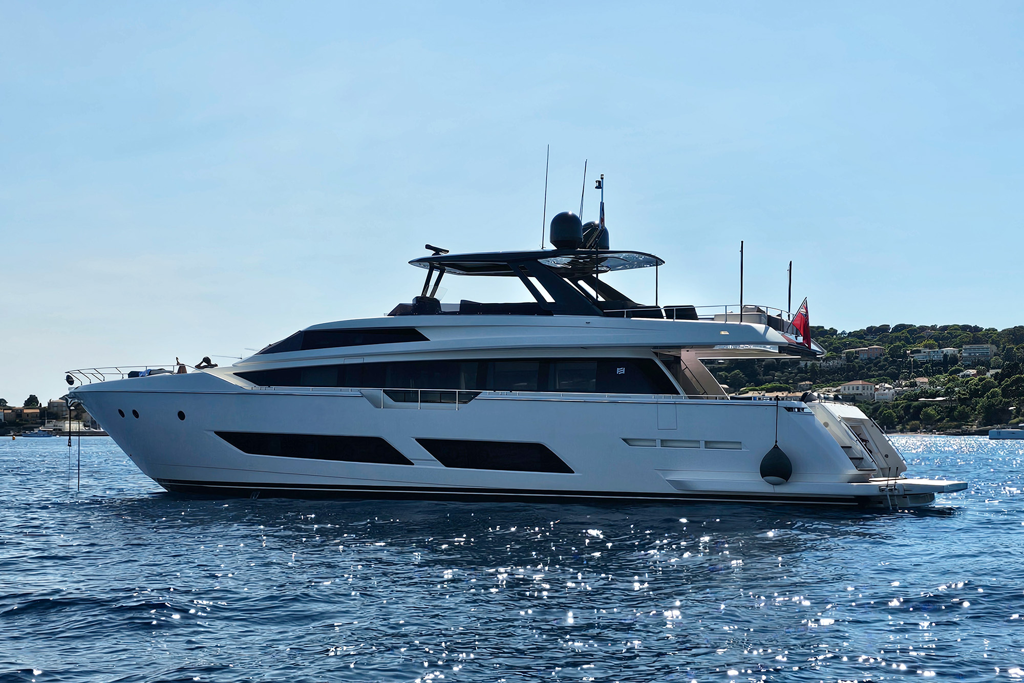 The Ferretti Yachts 850 is a stunning showcase of Italian design excellence, seamlessly blending luxury, power, and unmistakable style. Measuring 26 meters in length, this remarkable flybridge yacht turns heads in every marina and cruising destination with her dynamic, flowing lines and commanding presence on the water. Designed for discerning owners who desire both high performance and sophisticated living spaces, the Ferretti 850 captures the very essence of modern yachting.