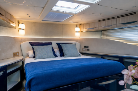 The flybridge is equally impressive, offering generous seating, a dining area, and sunbathing spaces, making it the ideal setting for enjoying long days on the water. Below deck, the Galeon 640 Fly provides flexible accommodation for up to eight guests across three or four well-appointed cabins, including a full-beam master suite.