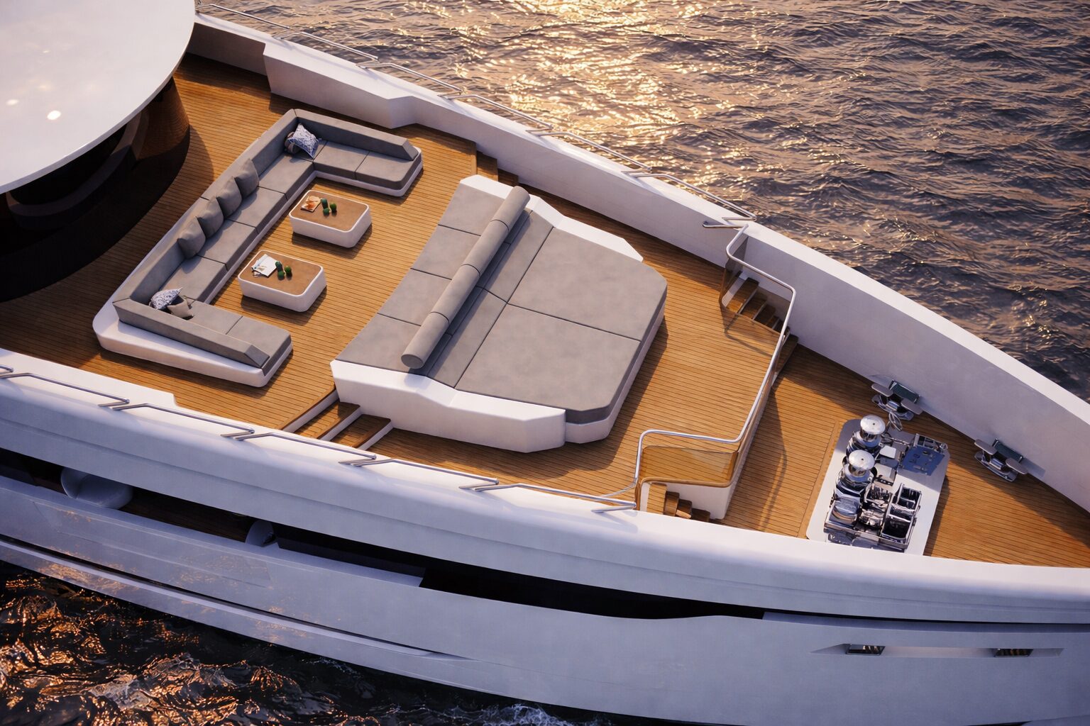 Inside, the LMY 165 is designed with a focus on scale, privacy, and clean architectural lines. Accommodation is arranged for up to 12 guests across six cabins, including a full-beam master suite. The interior concept prioritises natural light, open spaces, and a refined material palette, creating a sophisticated yet comfortable onboard environment.