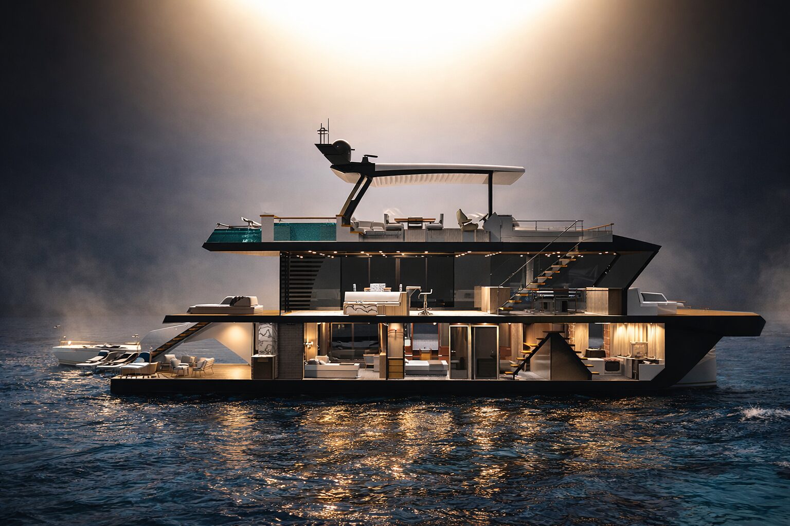 Outdoor areas are equally impressive, with an expansive flybridge designed for entertaining, offering generous lounge and dining spaces. The aft deck and beach club provide seamless access to the sea, making her ideal for both relaxation and waterside living.