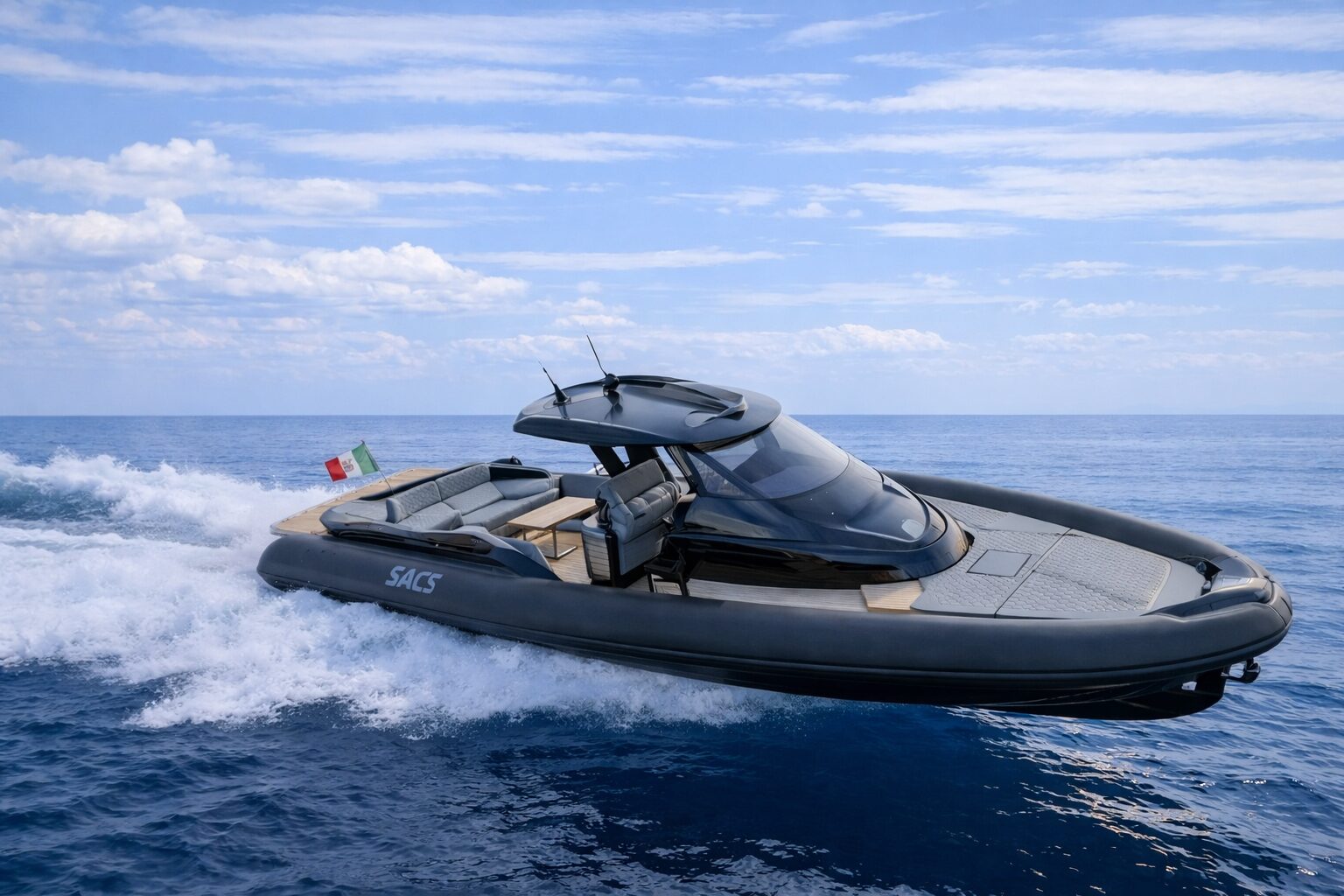 The SACS Strider 15 for sale is a luxury high-performance RIB yacht that perfectly combines Italian design, speed, and onboard comfort. Built by SACS Marine and styled with sleek, contemporary lines, this 15-metre yacht delivers an exceptional experience both underway and at anchor.