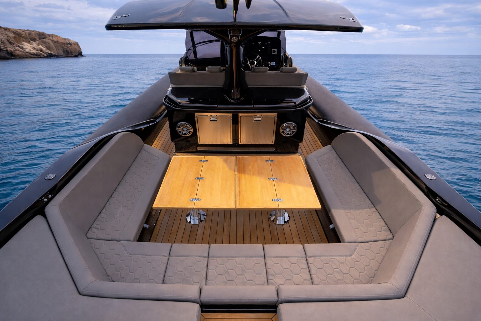 Designed for dynamic cruising, the Strider 15 features a deep-V hull that ensures excellent stability and smooth handling even at high speeds. Powered by twin Volvo Penta engines, she reaches up to 42 knots, offering an exhilarating yet controlled ride, ideal for exploring the Mediterranean in style.
