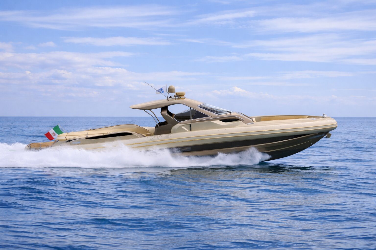 Developed in collaboration with renowned designer Christian Grande, the Strider 19 combines cutting-edge naval architecture with refined Italian styling. Its deep-V hull ensures exceptional stability and seaworthiness, allowing the yacht to perform effortlessly even in challenging sea conditions. With twin high-powered engines, she reaches thrilling speeds of up to 50 knots, making her one of the fastest vessels in her class.