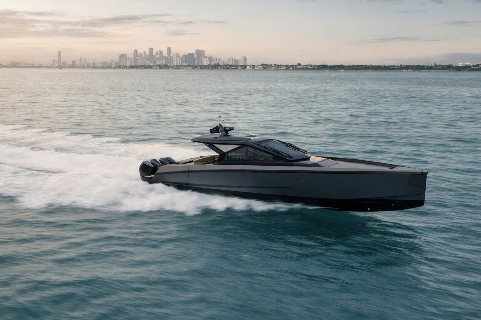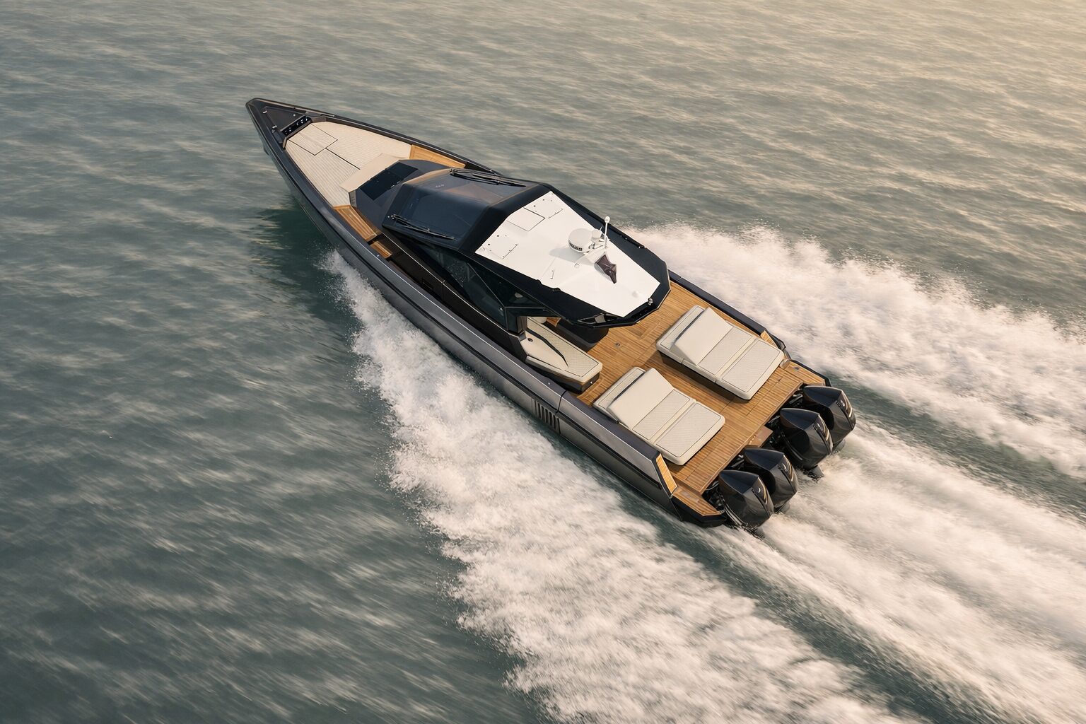 Performance sits at the heart of the experience. Purpose-built for outboard propulsion, the 50X features a transom notch capable of accommodating up to four Mercury Racing engines, each delivering up to 500hp. With this configuration, she reaches exhilarating speeds of up to 54 knots. Opting for the 425hp Mercury Verado V10 engines still delivers an impressive 48 knots, alongside a cruising range of up to 320 nautical miles. The sensation is immediate, responsive and precise, a yacht that feels alive beneath your hand.